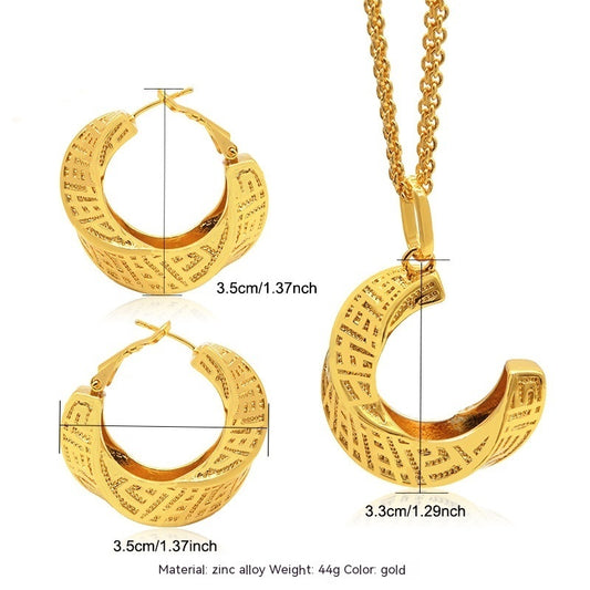 24K Gold Plated Two Pieces Copper Jewelry Suit Geometric Necklace Earrings