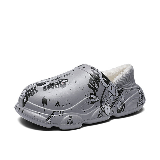 Fleece-lined Thickening Thermal Cotton Shoes Waterproof Non-slip Fur Integrated Men's Cotton Slippers