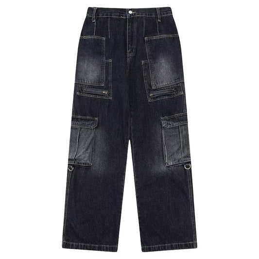 High Street Three-dimensional Multi-pocket Design Straight Jeans