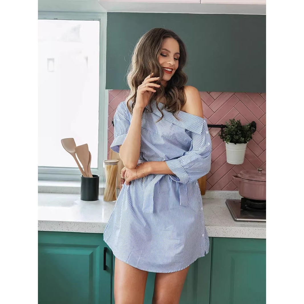 Robe moulante à manches courtes et rayures, sans taille élastique