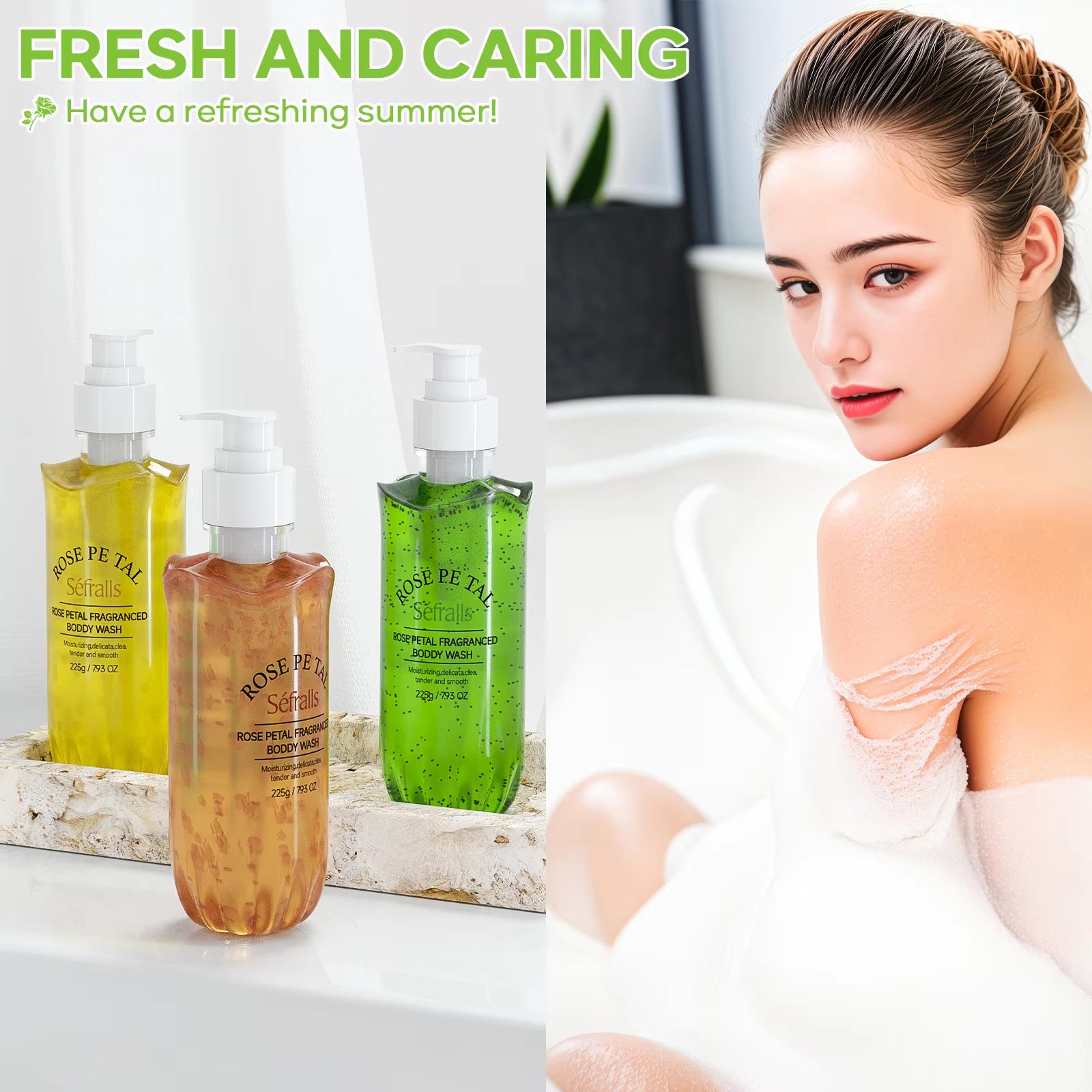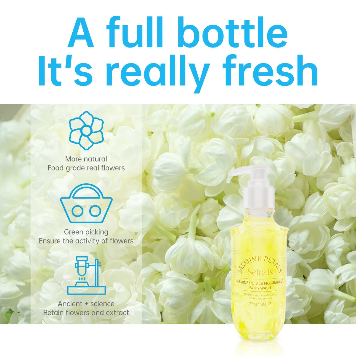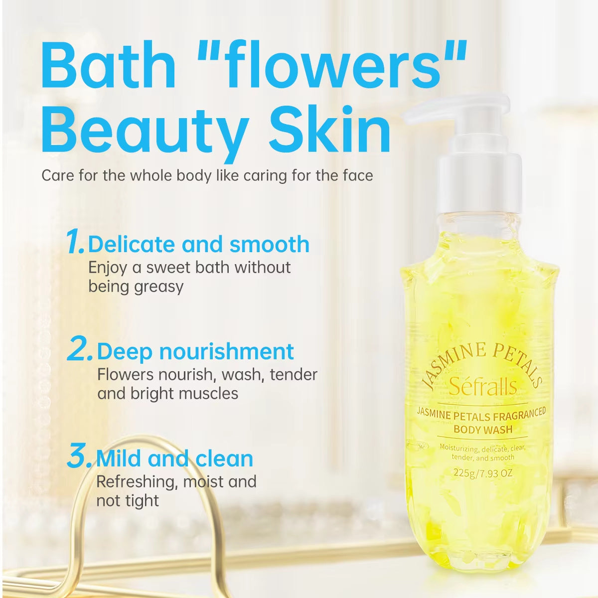 Set de gel de douche, ensemble de gel de pétale de pétale de rose et de jasmin Kiwi Nettoyage en profondeur Rafraîchissement parfum moussant doux bain