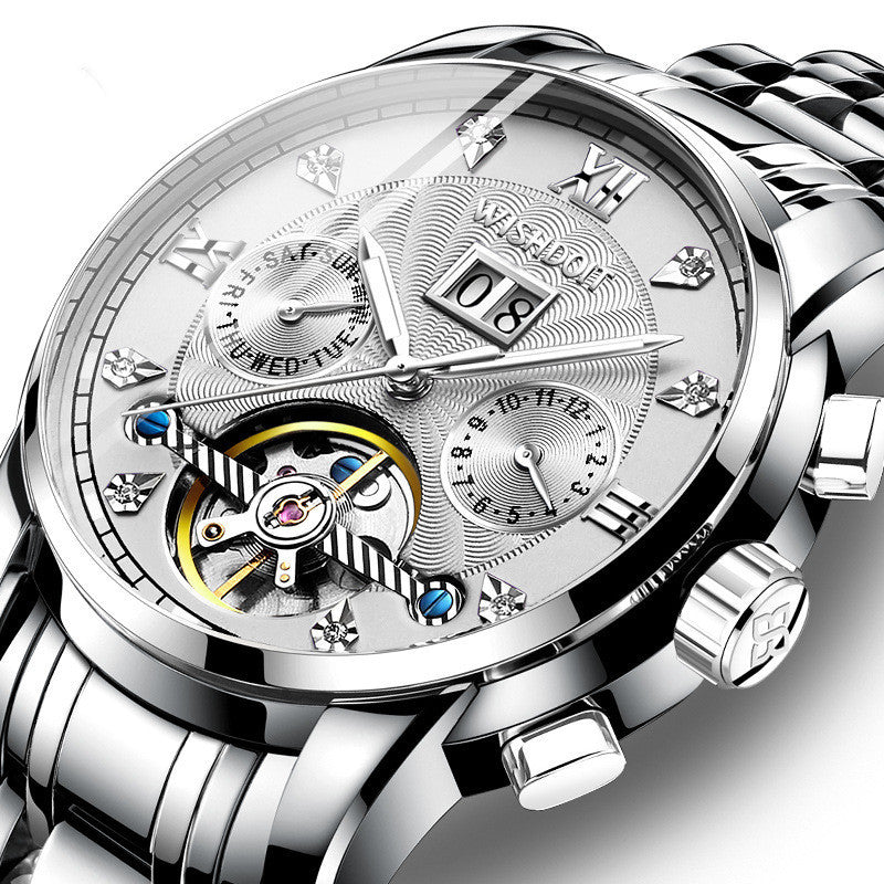 Montre mécanique automatique creuse à tourbillon en diamant lumineux