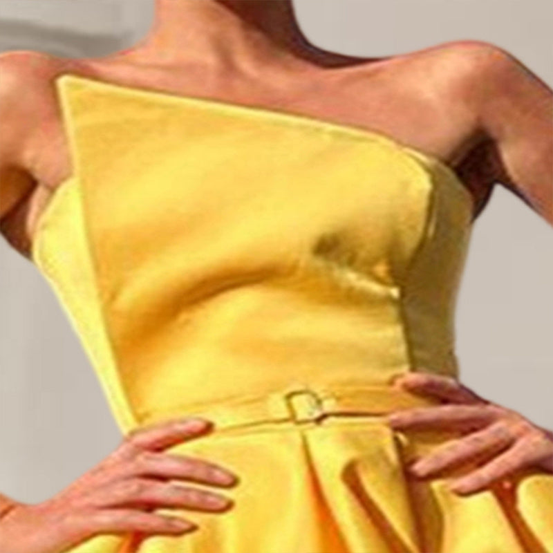 Elegant Strapless Design: Securely fitted bodice with delicate ruching for a flattering and sophisticated bust shape.